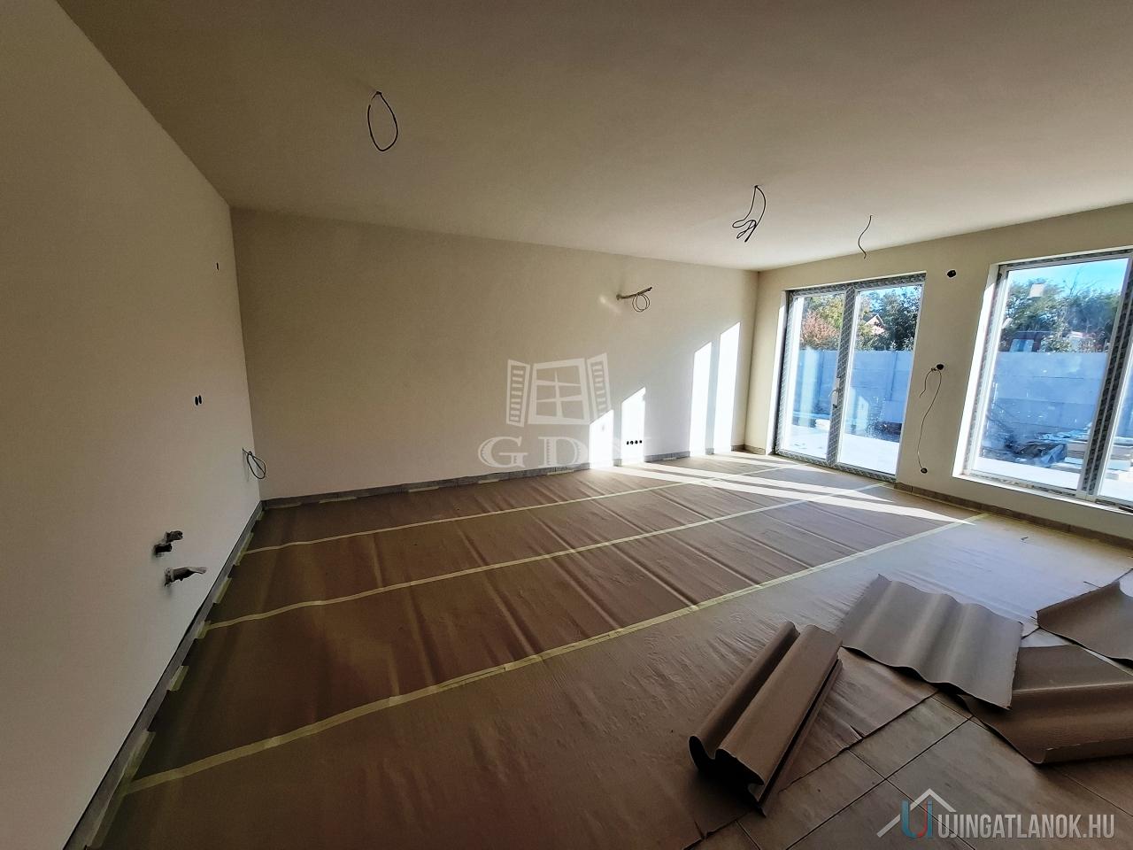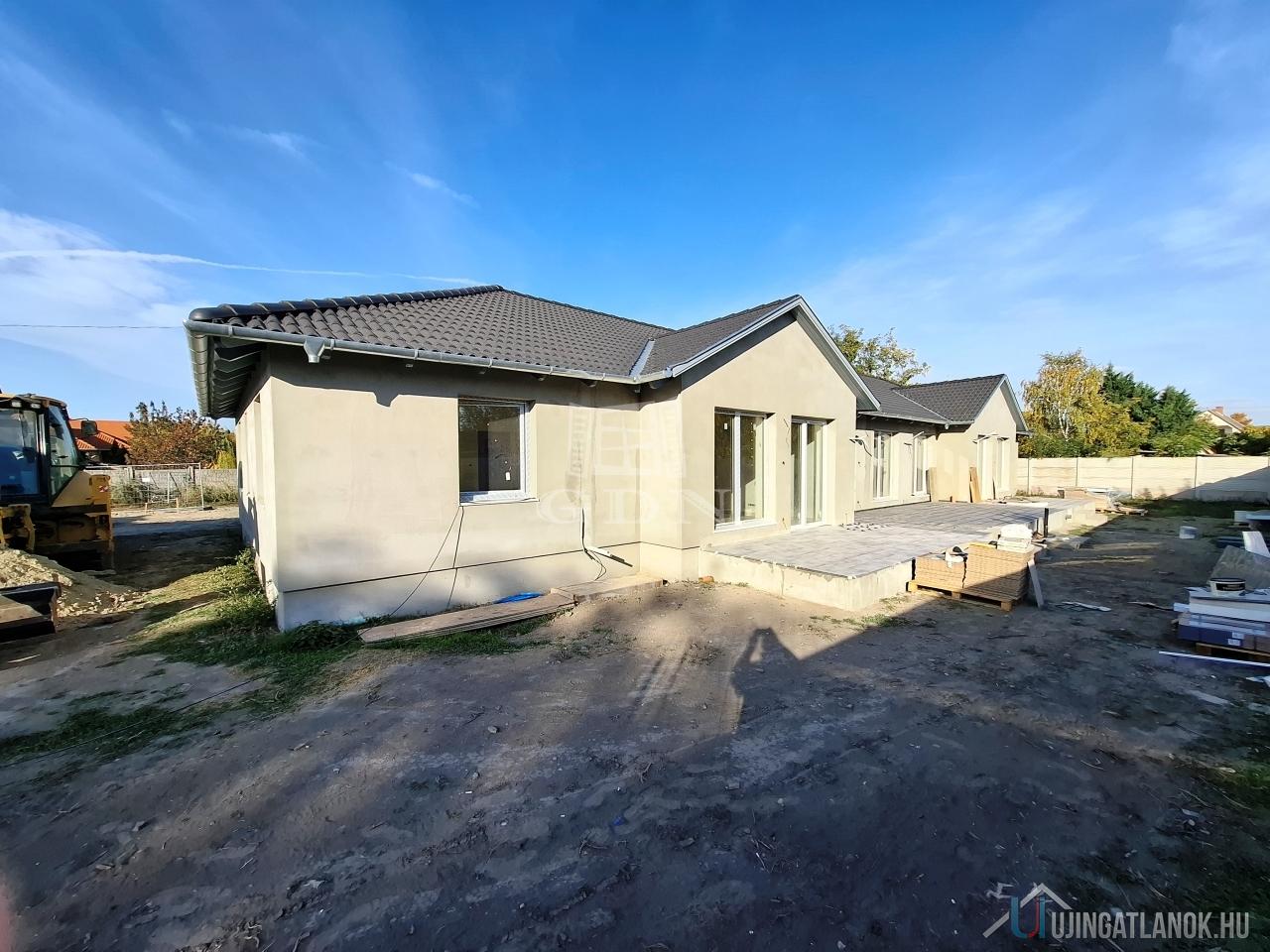 Új építésű házak szomszédságában kínálom megvételre, egy három lakásos sorház "A" lakását nettó 87,42 nm lakótérrel, 388,42 nm saját kerttel.