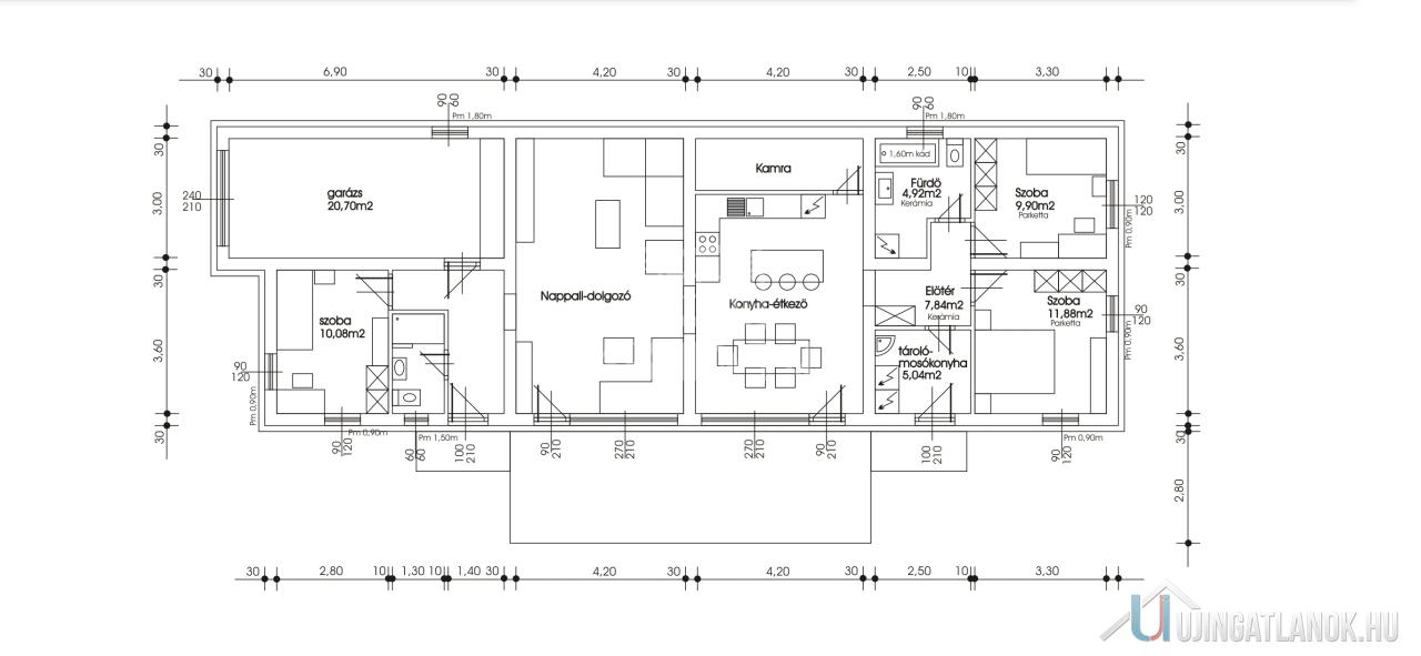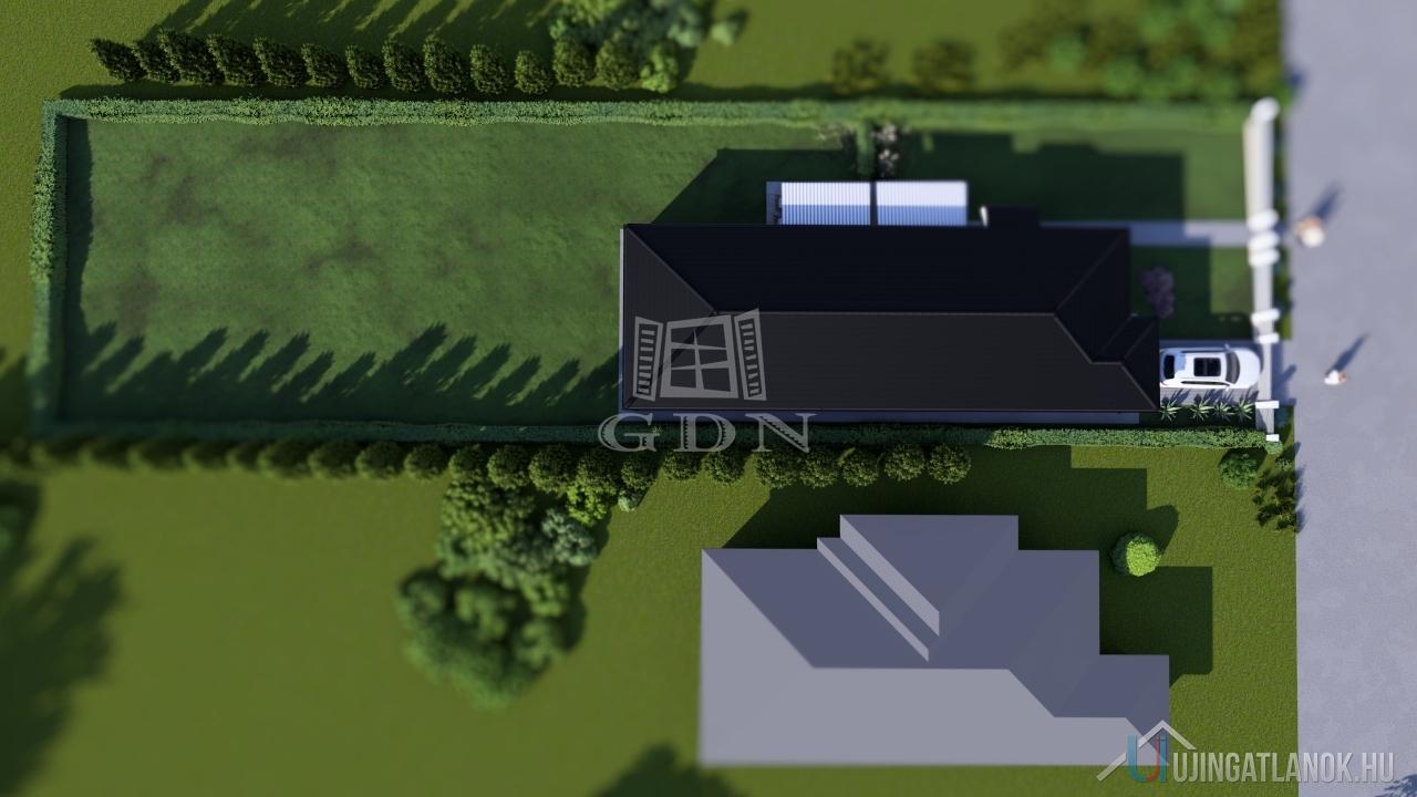 Három jól szeparált szoba biztosít privát teret minden családtag számára, miközben a nappali–étkező–konyha hármasa természetes központként működik. A WC és fürdő rugalmas kialakítása lehetővé teszi, hogy zuhanyzó vagy kád szerint alakítsd a teret, a garázs pedig nem csupán parkolást, hanem tárolást is ad. A nyugati tájolás és a 2,6 m-es belmagasság világos, levegős atmoszférát biztosít, ahol minden pillanat élménnyé válik.