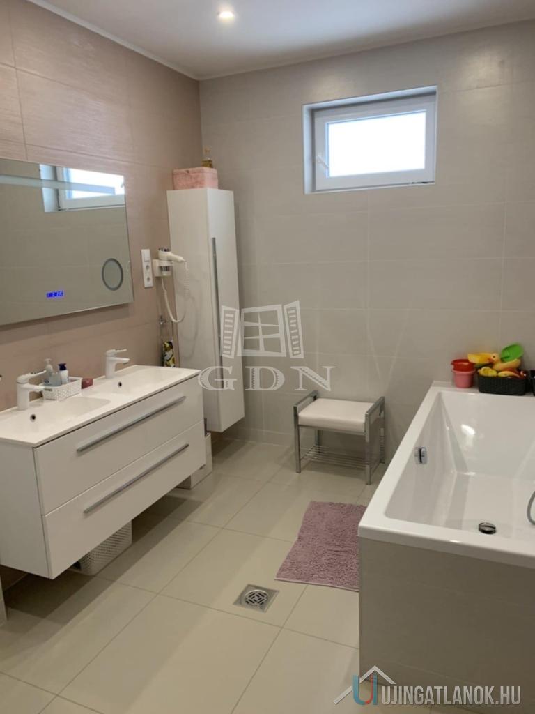 A lakható terület 148 nm, tágas amerikai konyhás nappali+ három háló, két fürdőszoba kádas-valamint zuhanyzós, kazánház, előtér-közlekedővel.