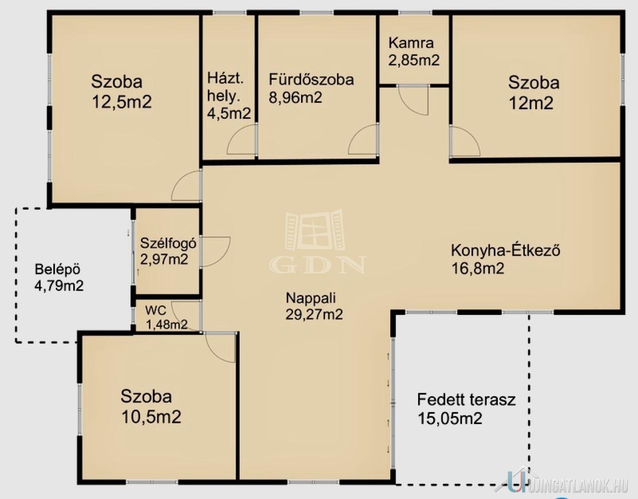 | Egész szobák száma | 3 db |