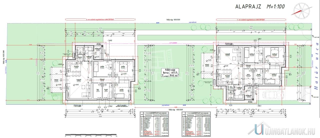 Az első ingatlan 438 m2-es kizárólagos használatú telekrésszel kerül kialakításra. Vételára: 69.900.000.- Ft.