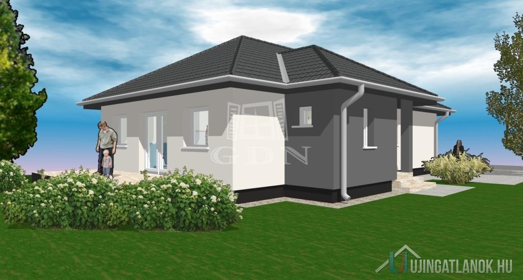 A telken két családi ház épül, az első ingatlan 18 méter széles és 48 méter hosszú 700 m2-es területtel az utcafronttól 5 méterre épül, a hátsó ingatlan 3 méter széles 48 méter hosszú 144m2-es szolgalmi úton lesz megközelíthető,a hátsó telek területe 2798 m2.