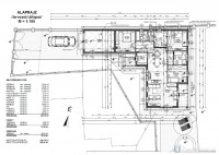 Földszint:110m2: előtér, nappali-konyha-étkező (45m2), kamra, 2 fürdőszoba, 3 hálószoba, háztartási helyiség, plusz 20m2 tágas garázs,