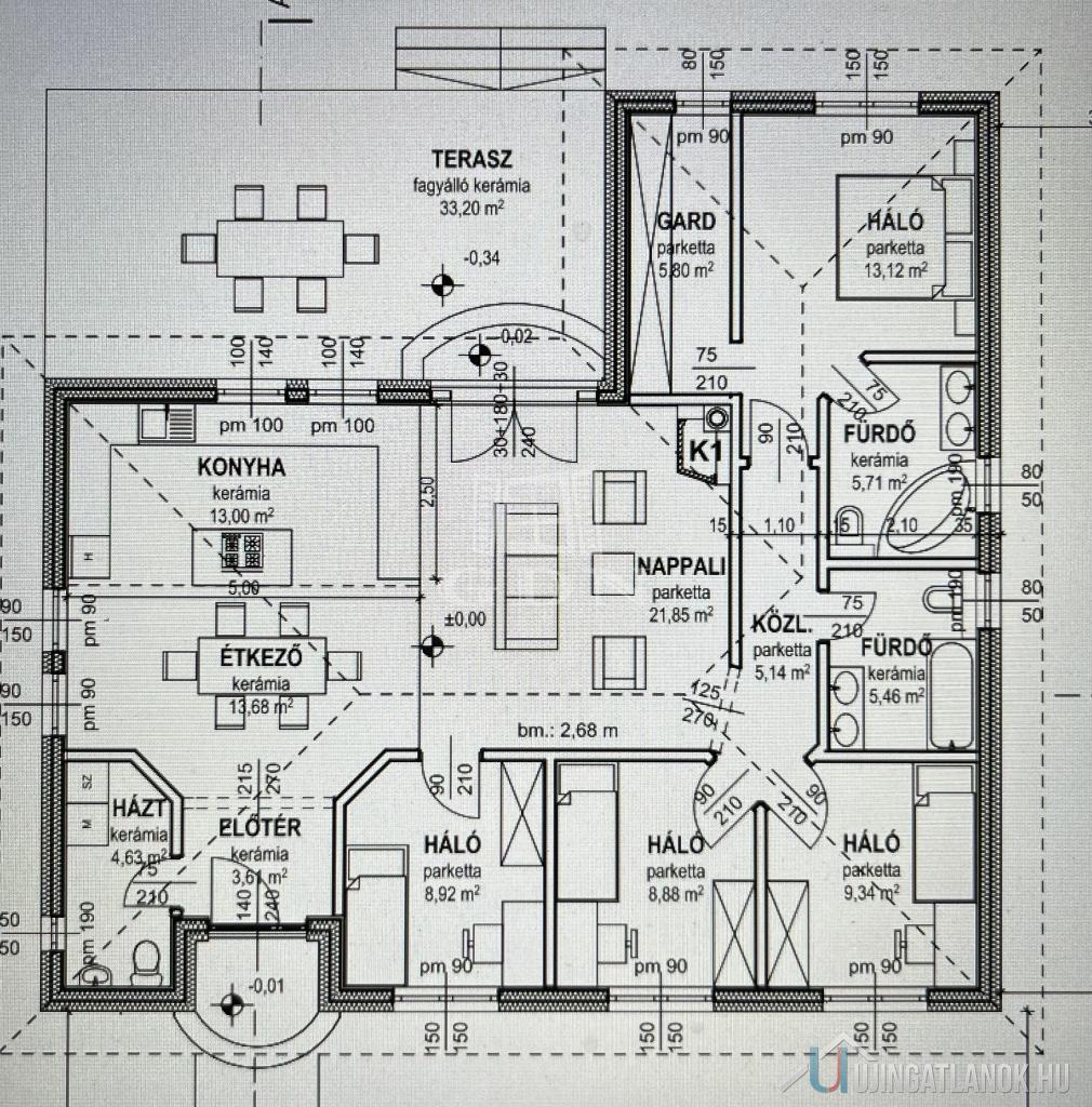 - 4 szoba, amerikai- konyhás nappali, gépészeti és tároló helység, mosókonyha