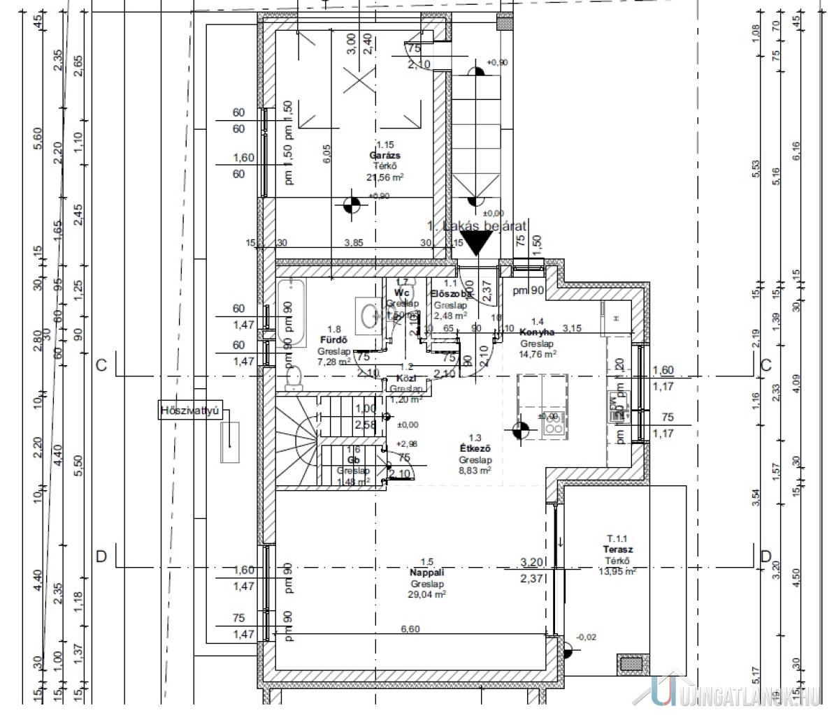 Parkolás: saját 36 nm-es dupla garázs, elektromos kapu előkészítés.