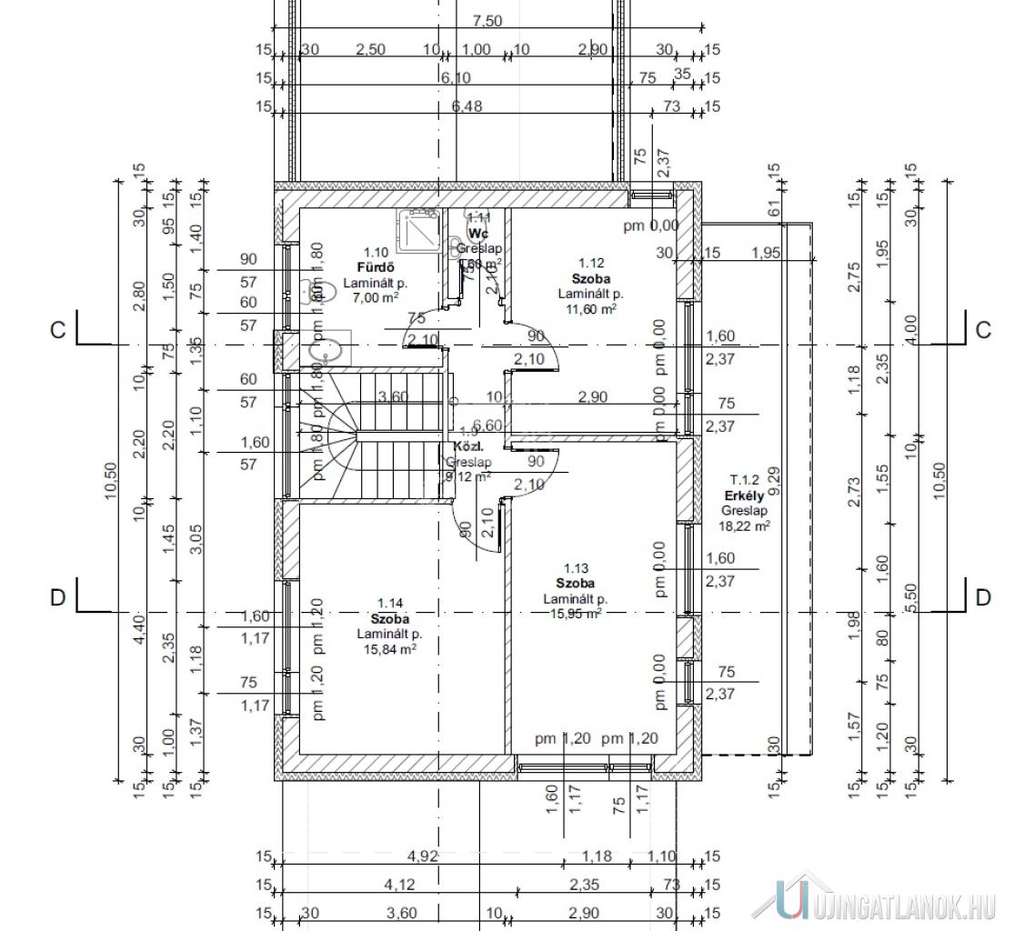 Fűtés: hőszivattyús padlófűtéssel, igény esetén mennyezeti hűtéssel, áramellátás: H tarifa igényelhető