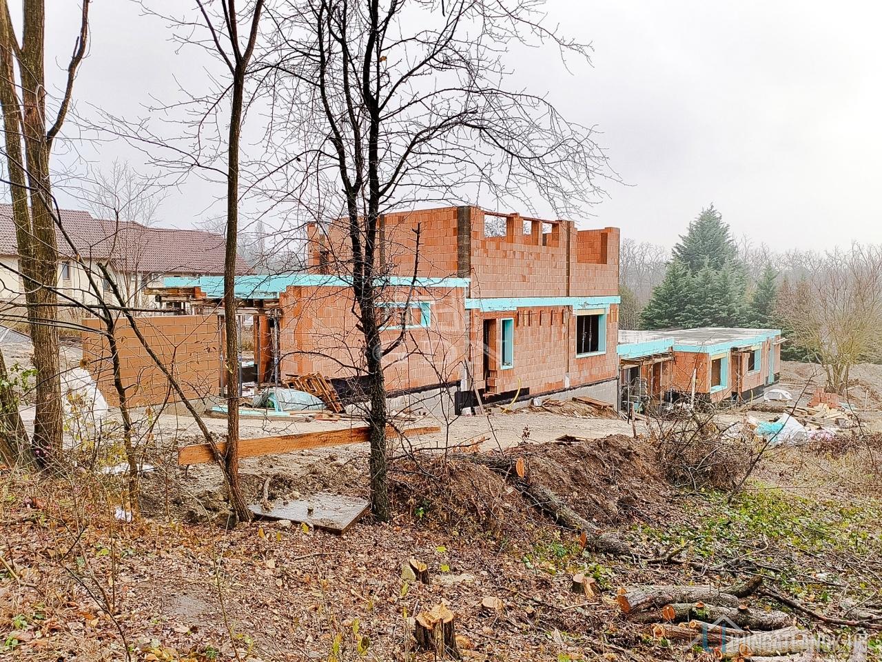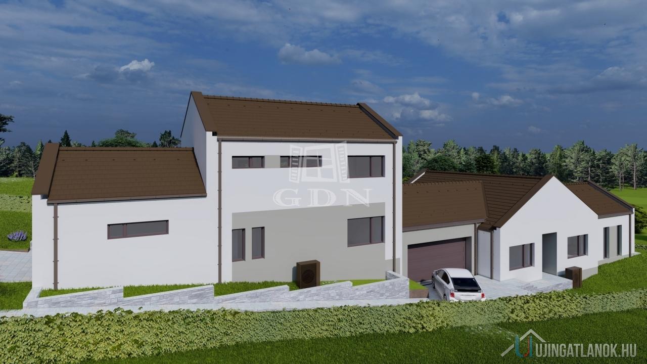 Veresegyház, Hegyek városrész csendes, kertvárosias részén, cca. 650 nm-es telek területtel, Új építésű, bruttó 176 nm-es, 5 szobás (nappali + 4 hálószoba, külön konyha, étkező), egy szintes, vasbeton födémes, hőszivattyús (levegő - vízes) padló fűtéssel, Dél - Nyugati fekvésű, műanyag thermo dió színű (3 rétegű, 7 légkamrás) nyílászárós, szigetelt (15 cm dryvit), új építésű, a másik féltől teljesen elszaparált, dupla garázzsal elválasztott, a másik lakóegységgel egy telken lévő, de külön, elválasztott úton megközelíthető családi ház (hátsó) eladó.
