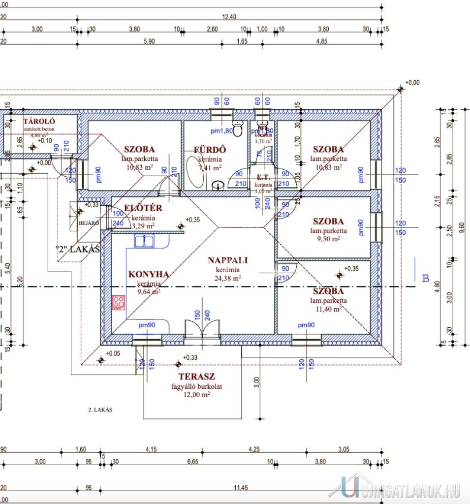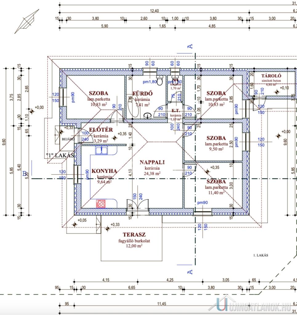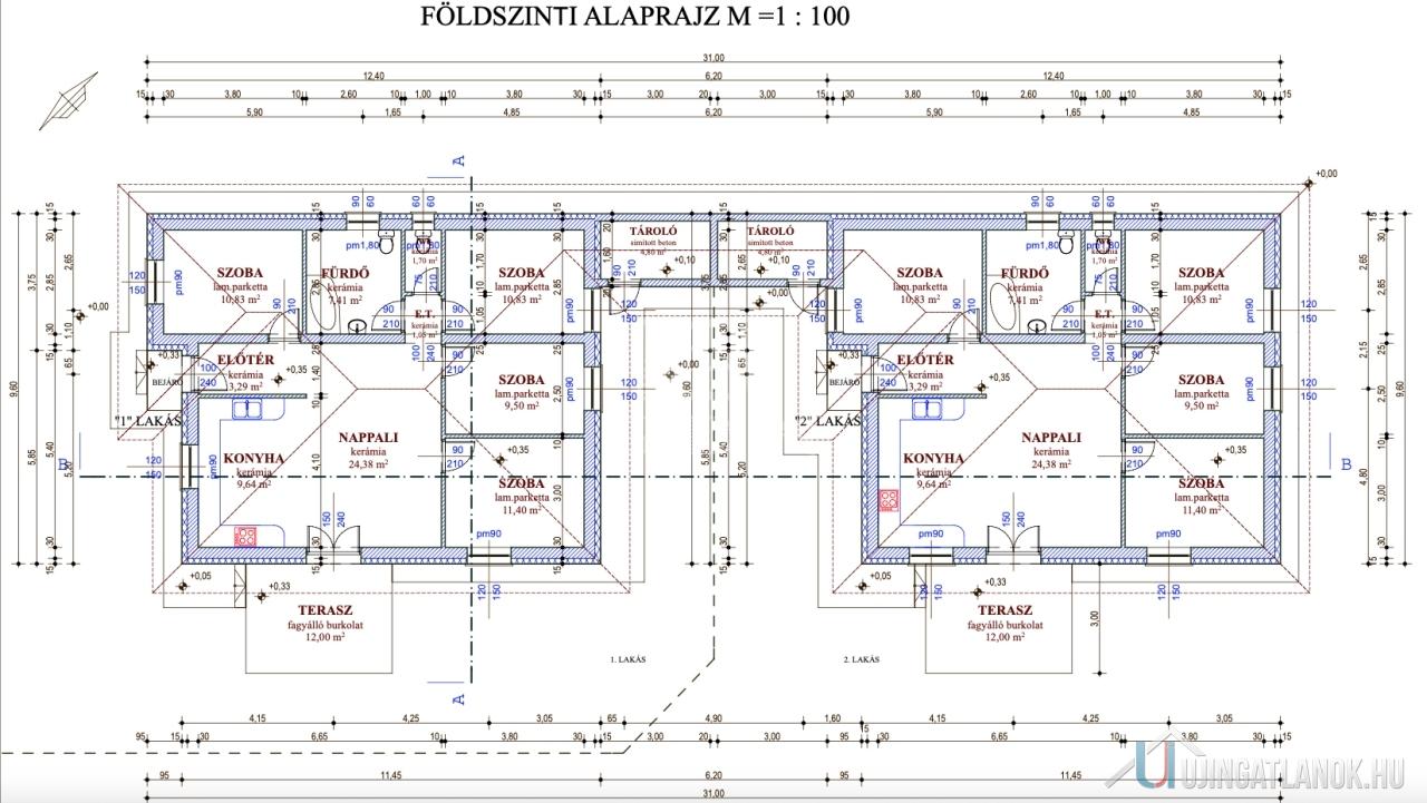 MÉRETEK, TÁJOLÁS, ELRENDEZÉS, AZ ALAPRAJZOKON.