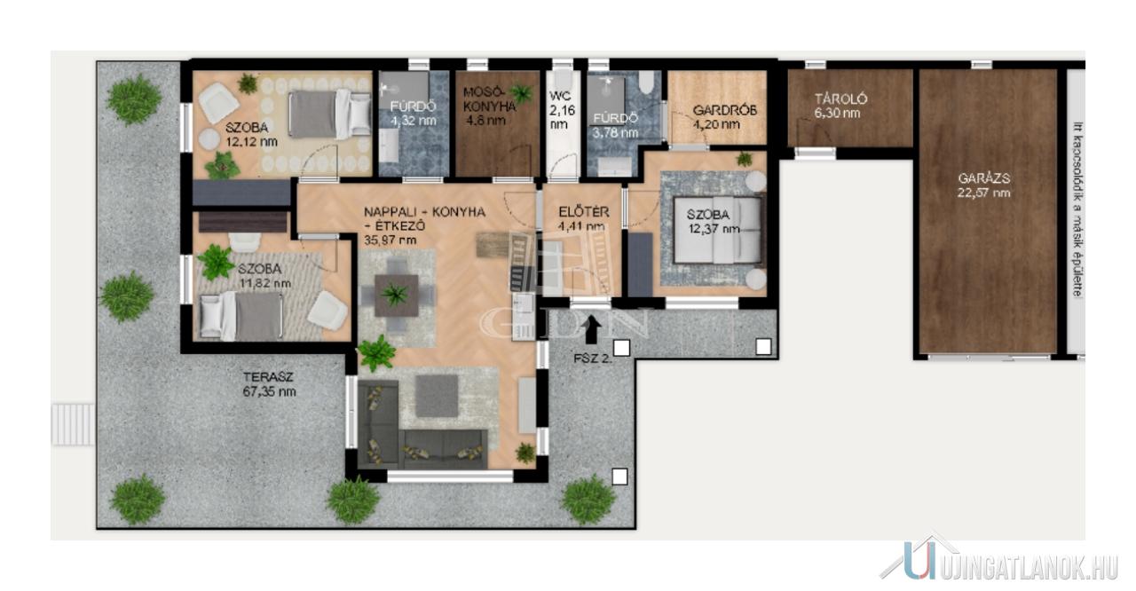 Privát, tágas kert 900 nm – zavartalan élettér.
