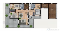 Szülői hálószoba saját gardróbszobával, valamint különálló zuhanyzós fürdőszobával és WC-vel, biztosítva a teljes privát szférát.