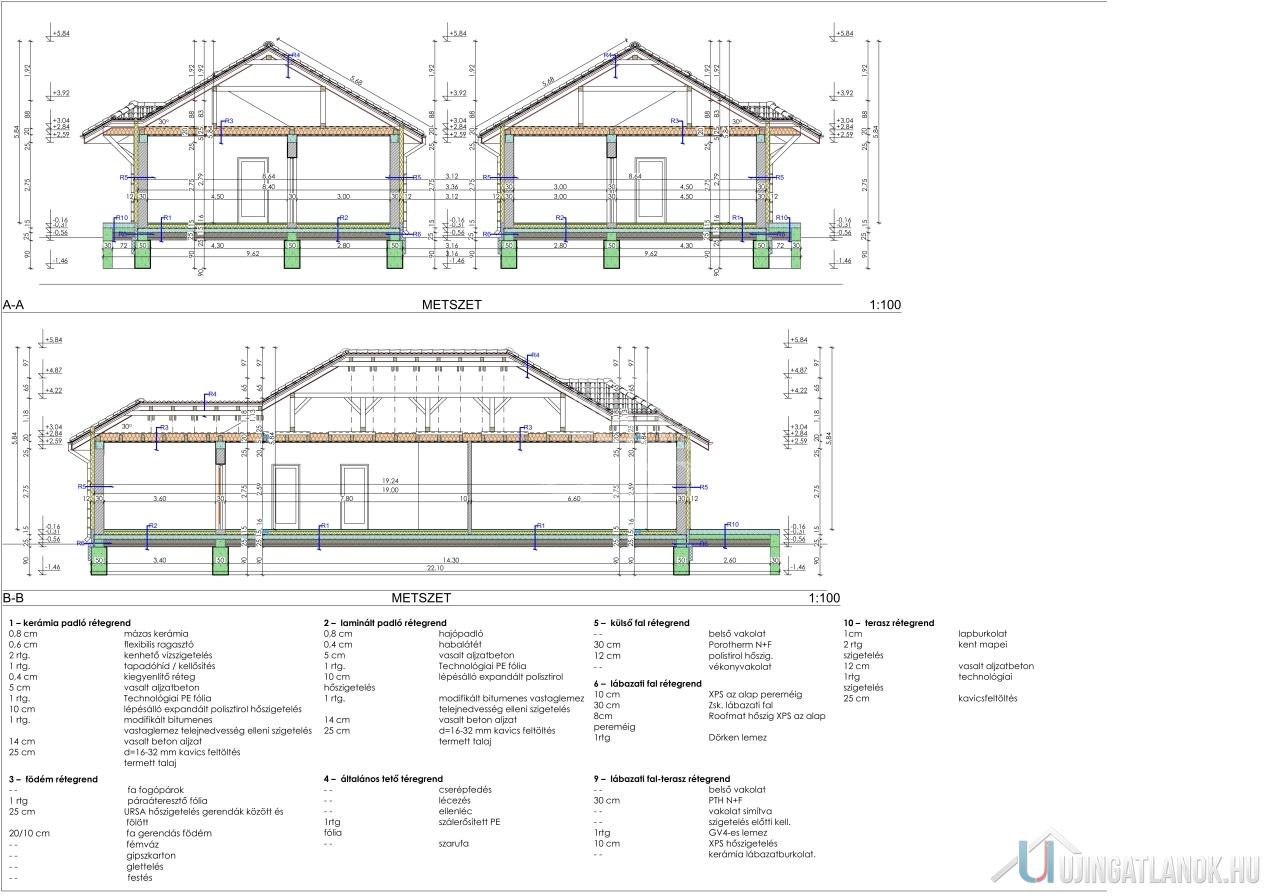 A Porotherm 30 N+F téglából épülő tartószerkezeti falak, a betonkoszorú és a fa födémes tetőszerkezet hosszú távú stabilitást biztosítanak. A kiemelkedő hőszigetelésről 10 cm-es polisztirol lábazati, 15 cm-es EPS homlokzati, valamint 30 cm-es ásványgyapot födémszigetelés gondoskodik.
