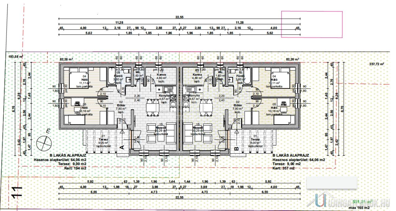 A Lakás - 64,06 m2, telekméret: 194 m2 - ára 49.900.000 ft