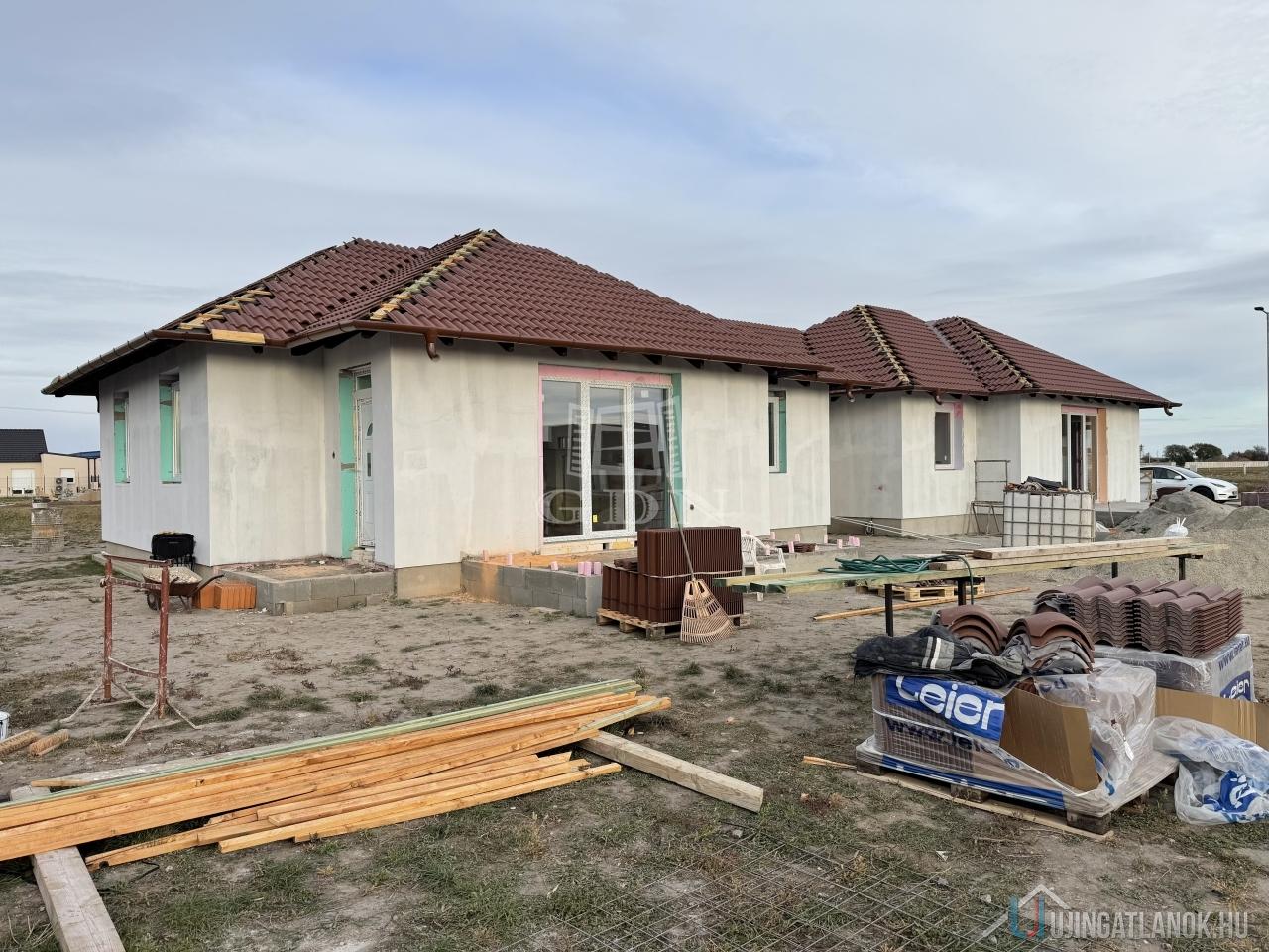 Jászberényben a Szatmári lakóparkban a Bársony utában, 700 m2-es telken, eladó 2db nettó 83,2m2-es + 13,5m2 terasszal rendelkező, fafödémes, 3 szoba plusz amerikaikonyha- nappalis kertkapcsolatos Ikerházfél.