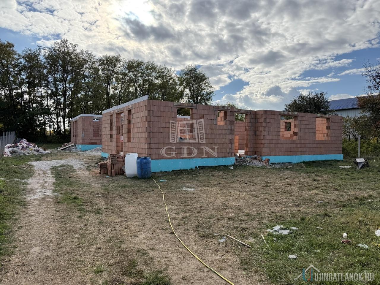 Kóka, Felsővásártér 61/A szám alatt, egy 1306 m²-es telken kínálunk eladásra két, nettó 102,24 m²-es családi házat, amerikai konyhás nappalival és három külön nyíló szobával.