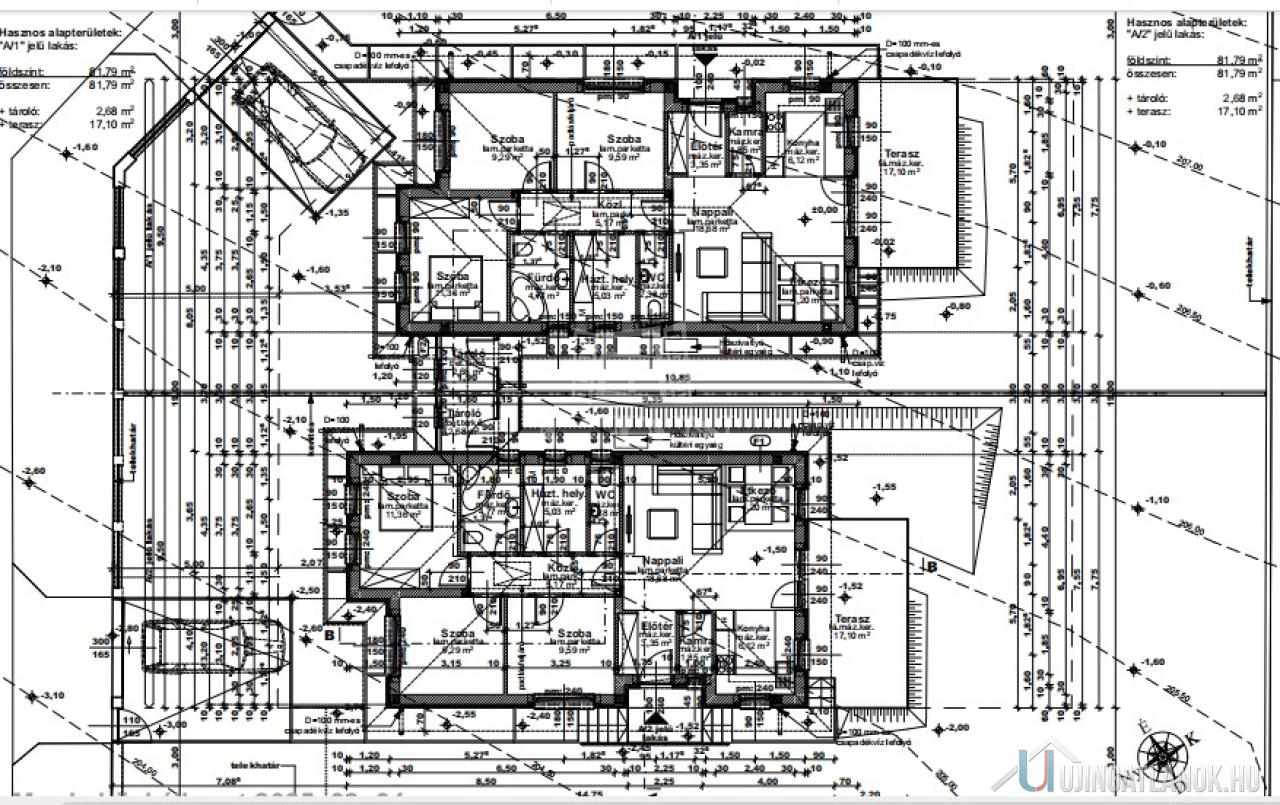 Elrendezés: 3 tágas szoba + amerikai konyhás nappali, külön WC és külön fürdőszoba