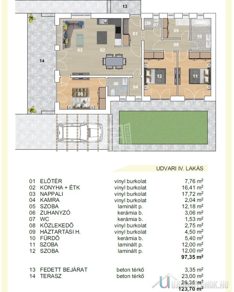 | Egész szobák száma | 4 db |