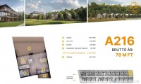 Az első emeleten további 21 lakás érhető el, 47–75 m² közötti méretben.