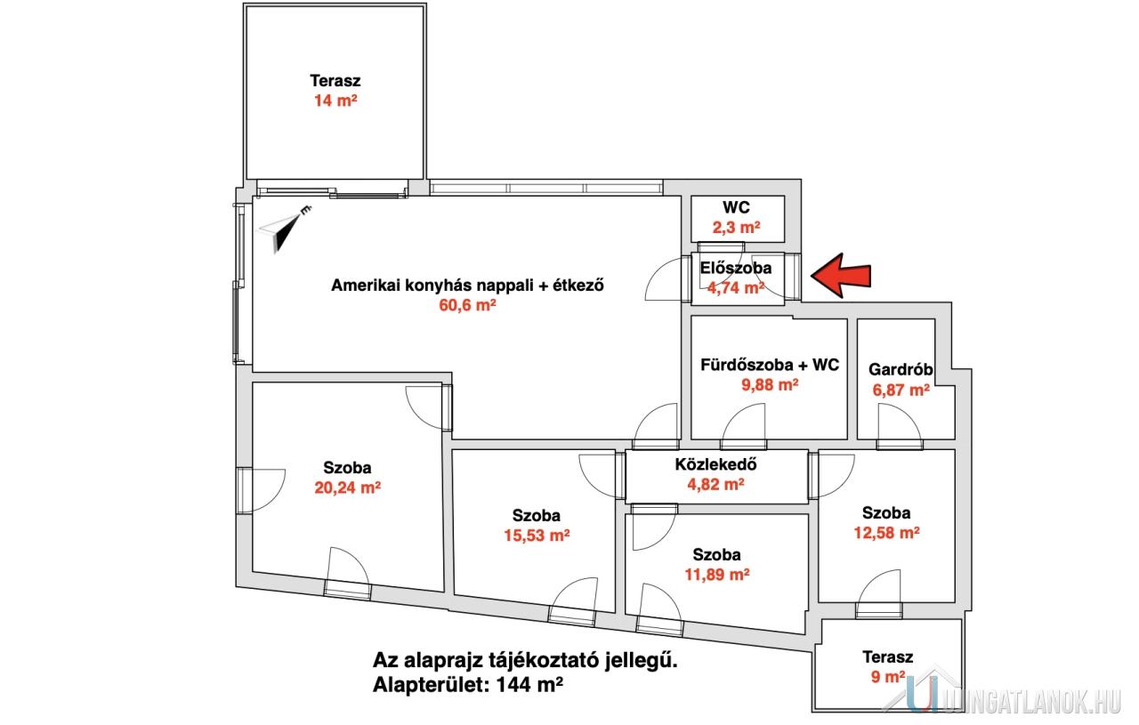 Kert és terasz: A lakáshoz egy 9,93 nm-es terasz, egy 14,34 nm-es télikert és egy tekintélyes, 285,5 nm-es saját kert tartozik.