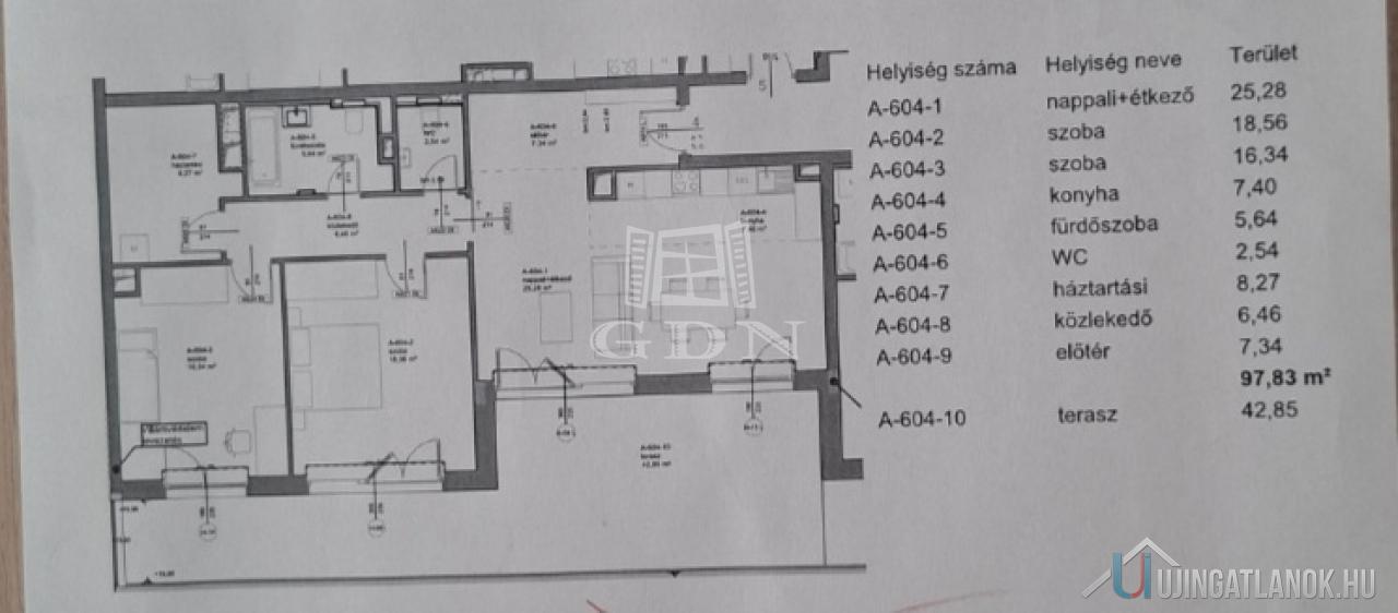 A 6. emeleti új építésű otthon 97,82 m²-en ad teret a nyugalomnak, a harmóniának és annak, hogy végre kényelmesen élhess. A nappaliból kilépve 42,85 m²-es terasz vár — reggeli kávéhoz, esti beszélgetésekhez, vagy egyszerűen csak ahhoz, hogy kiülj és fellélegezz a város felett.
