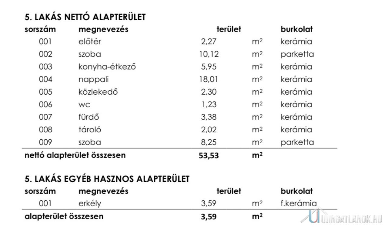 5. lakás 53,5 nm, Emeleti,