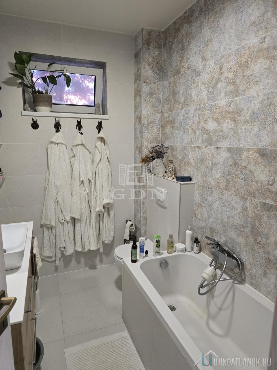 A lakás kiváló elosztással rendelkezik, meleg, déli tájolású nagy ablakokkal, fedett terasszal. Az öntözőrendszerrel kialakított kertben fatüzelésű erdélyi fürdődézsával és egy prémium kivitelezésű 6 személyes finn szaunával, a nyári madárcsicsergés mellett még a téli hétköznap esték is meghitt nyugalomban és teljes feltölődésben telnek.