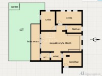 előtér - mosdó-wc - konyha-étkező-nappali-fedett terasz - előtér - fürdő-wc - szoba - szoba - kert- szaunaház