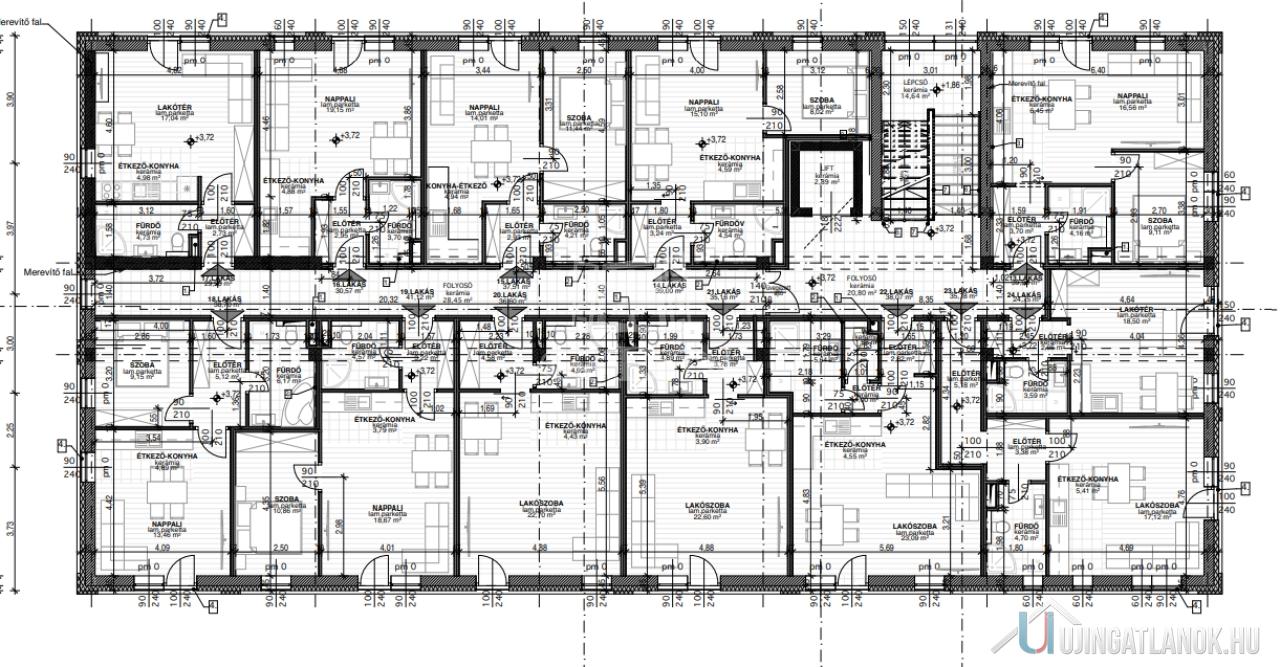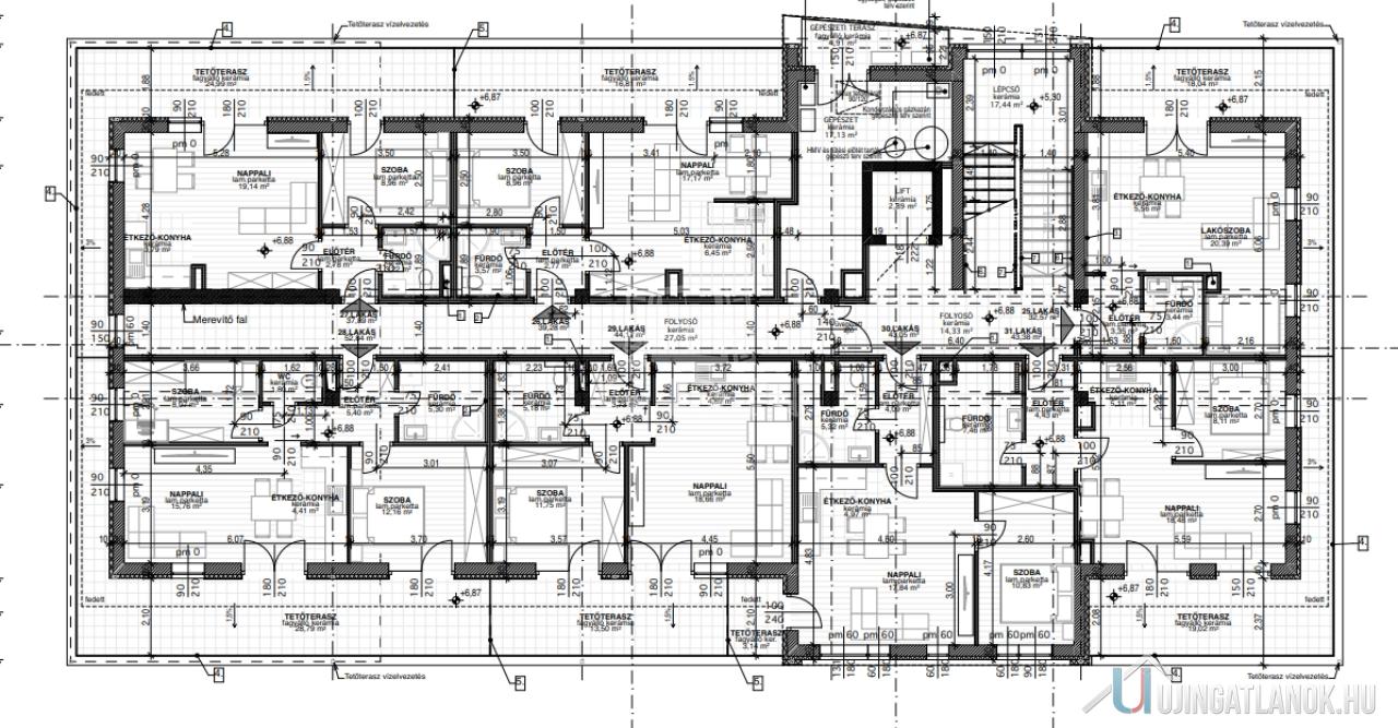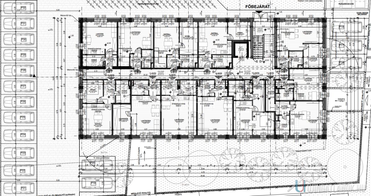 A társasházban 31 db lakás kerül megépítésre, a földszinti és első emeleti lakások erkély nélküliek, a 2 emeleti lakások terasz kapcsolattal rendelkeznek.