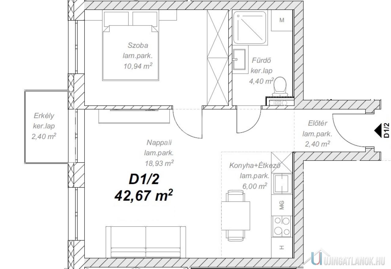 UTOLSÓ LAKÁS! Mendén csodálatos zöld környezetben a Hétdomb lakóparkban, I. ütem második szakaszában megvalósuló új építésű zárt lakóparkban, A. kategóriás energiatakarékos ( hőszivattyús ) 16 lakásos társasházban, nettó hasznos 42,67 m² alapterületű, I. EMELETI ERKÉLYES lakást kínálunk eladásra ( D épület I. emelet 2. Lakás ).