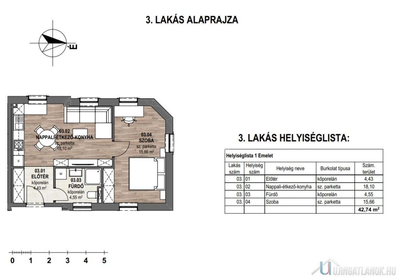Az ingatlan felépítése alagsorból – ahol tárolók, kazánház és három gépkocsi befogadására alkalmas teremgarázs lesz kialakítva – földszintből és egy emeletből áll. Szintenként két-két lakás kap helyet, valamint a tetőtérben egy nagyobb alapterületű lakás helyezkedik majd el, terasszal. Ez a lakás privát adottságai miatt különösen vonzó lehet.