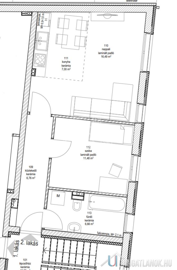 Társasházban változatos alapterületű lakások köthetőek le 22 m2-től -78 m2-ig, amelyek 31,6 -108,7 M. forintos áron vásárolhatóak meg.