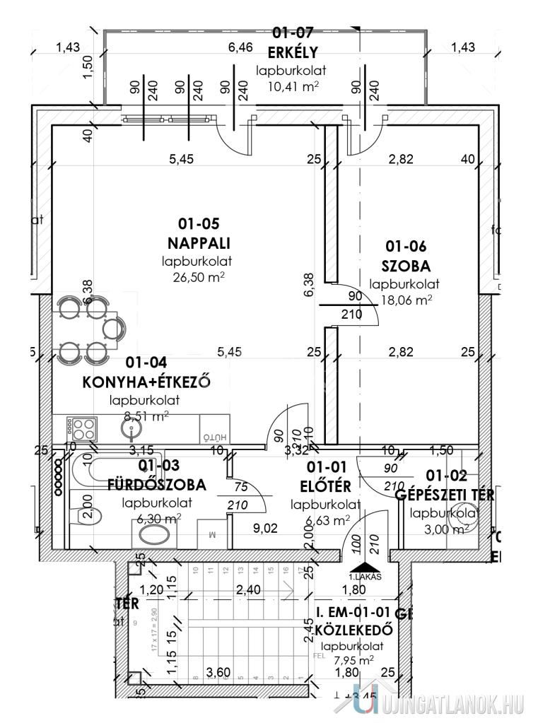 - előtér + gépészeti helyiség