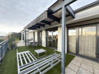 A lakás különlegessége a 52,46 m²-es, részben fedett terasz, amely tökéletesen alkalmas pihenésre, étkezésre vagy vendégek fogadására. A terasz további kényelmét elektromos napellenző biztosítja. Az ingatlan minden ablaka háromrétegű műanyag nyílászáróval és elektromos alumínium redőnyökkel felszerelt, a bejárati ajtó pedig több ponton záródó, prémium minőségű kivitel.
