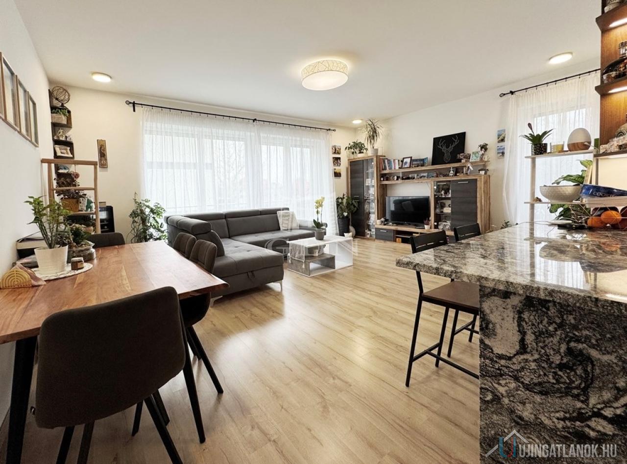 Szigetszentmiklóson, a buszmegállótól mindössze 2 perc sétára, exkluzív, zárt lakóparkban, liftes épület első emeletén eladó egy DNY fekvésű, kiváló beosztású, 74 m² nettó (93 m² bruttó) lakóterületű, újszerű összkomfortos lakás.