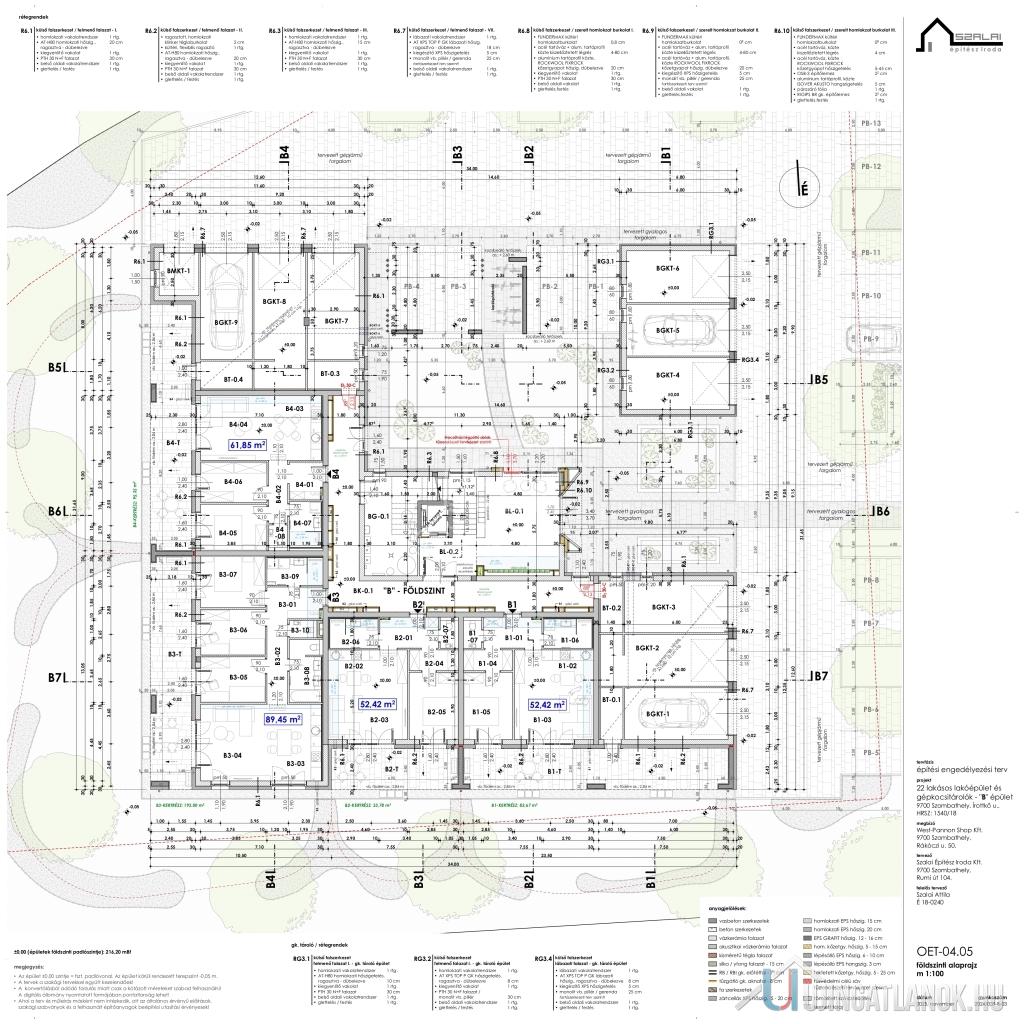 Modern megjelenésű, értékálló, kényelmes és élhető lakóparkban valamint az épületekhez kapcsolódó egyedi lakókörnyezetben szeretne élni? Hamarosan megvalósulhat az álma. A Gyöngyös-patak partján belváros közeli prémium lakások épülnek 20 000 m2-es területen, több ütemben. A tervezés során a funkció, a környezettudatosság és a kényelem voltak a legfontosabb tervezési szempontok. Így különösen az épületek szellős elhelyezése, a lakások kedvező tájolása, az épületek körül a maximális zöldterület és a megfelelő garázs szám biztosítása, a színvonalas közösségi funkciók kialakítása. A lakások értékállóságát és kényelmét az átgondolt tervezés, a minőségi anyagok használata, a nagy méretű, intim teraszok, a lift, a megújuló energia, egyedi és közös tárolók, fedett beállók, garázsok biztosítják. Az alkalmazott szerkezetek megfelelnek a ma érvényes “közel nulla energiaigényű épületek” követelményeinek. Az épületek előtti sétányok díszkivilágítást kapnak mozgás- és alkonykapcsolás vezérlésével. A sétányokról különböző típusú gépkocsi beállóhelyek – felszíni fedett, és normál parkolók ill. garázsok - közelíthetők meg. Egyes parkolók között beruházói döntés szerinti helyen és műszaki kialakítással, elektromos töltőpont csatlakozási lehetőség biztosítható. A közös területek alkalmasak játékra, pihenésre, a földszinti lakások előtti kijelölt zöldterület saját használata mellett. A ház kaputelefon rendszerrel lesz felszerelve. A lépcsőházban és egyéb közös terekben légterenként időkapcsolós világítás lesz kiépítve. A mai korszerű követelményeknek, az épületek hő és hangszigetelése a vonatkozó szabályoknak maximálisan megfelel. A külső hőszigetelés vastagsága 16-20 cm. Az ablakok 3 rétegű üvegezéssel kiváló hőszigetelésű nyílászárók. A lakások padlófűtéssel rendelkeznek, mely a szabadabb belsőépítészeti kialakításoknak ad lehetőséget. A tervek szerint a központi gépészet távfelügyeleti rendszerrel ellátott, távfűtés, így a karbantartás és üzemeltetés során ez gyors beavatkozást és üzembiztonságot eredményez. A fogyasztás egyedi mérőkkel mért, az elszámolást a közös képviselő végzi. A megújuló energia tervek szerint a megfelelő energetikai szabályok alapján kerül telepítésre pl. napelemrendszer. (Kiviteli terv során változhat: kondenzációs gázkazán és/vagy hőszivattyú). Belsőépítész által tervezett lakások, nagy teraszokkal kapcsolódnak a természethez. Befektetőknek, nagy családoknak alkalmas lakások kerülnek kialakításra. A kisebb lakások 52 m2, 62 m2, a nagyobb lakások 67 m2, 76 m2 és 89 m2 nagyságúak lesznek. 12-33 m2 fedett intim teraszok kerülnek kialakításra. Aktuális, bevezető ajánlatban az 1db felszíni parkolót, vízlágyító rendszert, klíma előkészítést ajándékba adja a beruházó. A lakásokhoz tárolók, garázsok vásárolhatók. Kimerítőbb tájékoztatást személyesen. A hírdetésben szereplő lakás földszint 1.