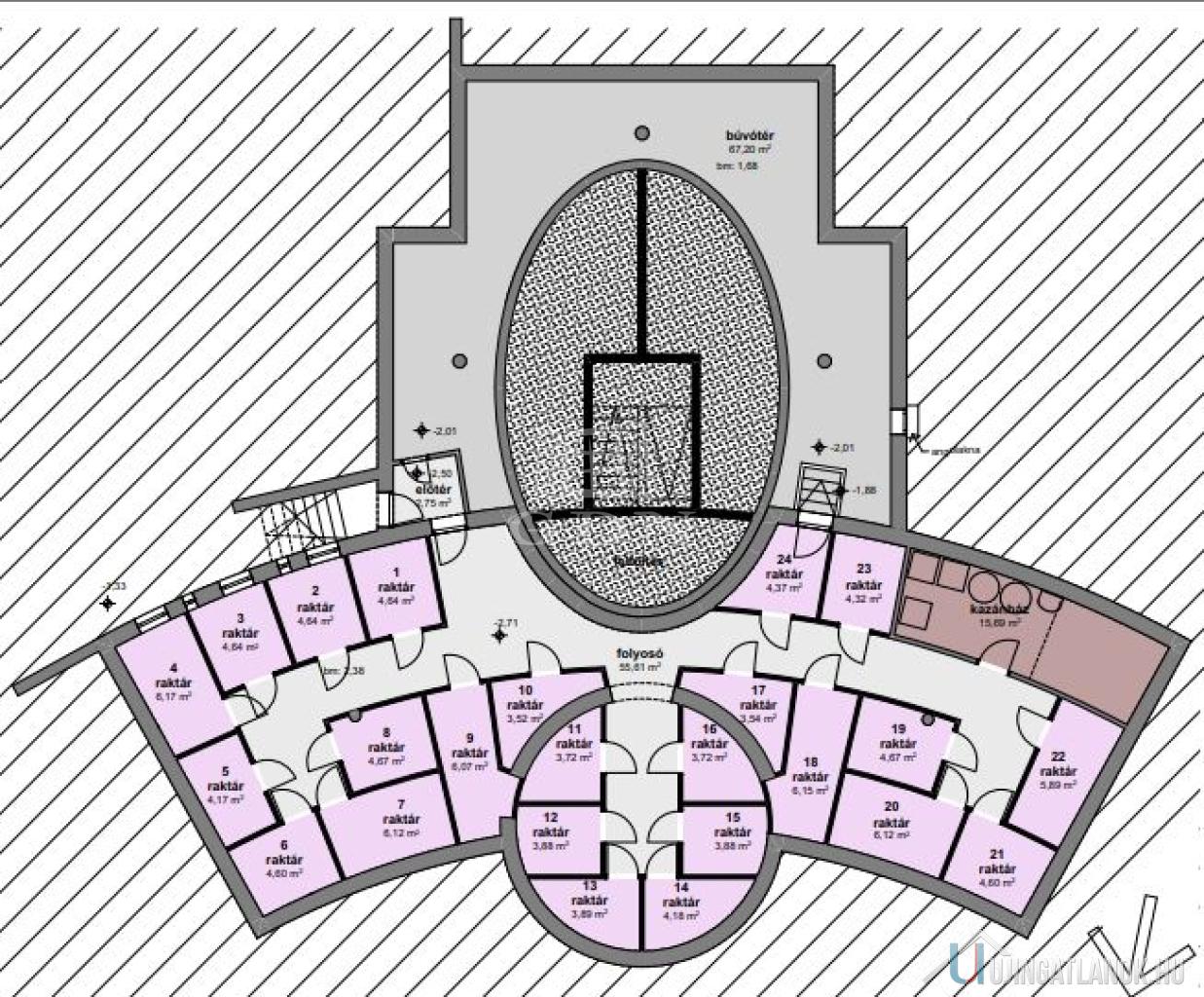 A ház alagsorában különféle méretű tárolók (3,8 - 6m2) kerültek kialakításra, melyek szintén megvásárolhatók.