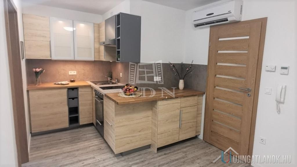 Az ingatlan amerikai konyhás nappalival, külön hálószobával, kádas fürdőszobával WC-vel, valamint az előszobában kialakított nagy méretű, igényes gardróbrendszerrel rendelkezik.