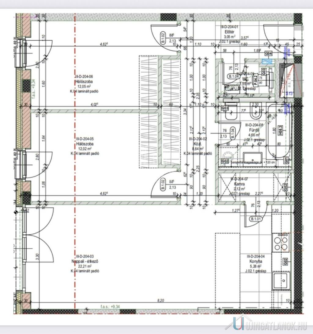 Az amerikai konyhás nappalihoz kamra kapcsolódik, a tér pedig egy 6 m²-es erkélyre nyílik, amely tökéletes helyszíne a reggeli kávéknak vagy az esti kikapcsolódásnak. A kényelmes pakolás érdekében a közlekedőben beépítésre került hatalmas gardróbszekrény.