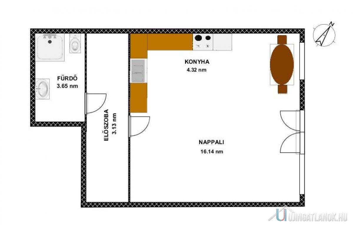 Kisállat vihető: Nem; Bútorozott: Nem; Gépesített: Igen; Amerikai konyhás: Igen; Kertkapcsolatos: Igen; Közös költség összege: 19000 Ft