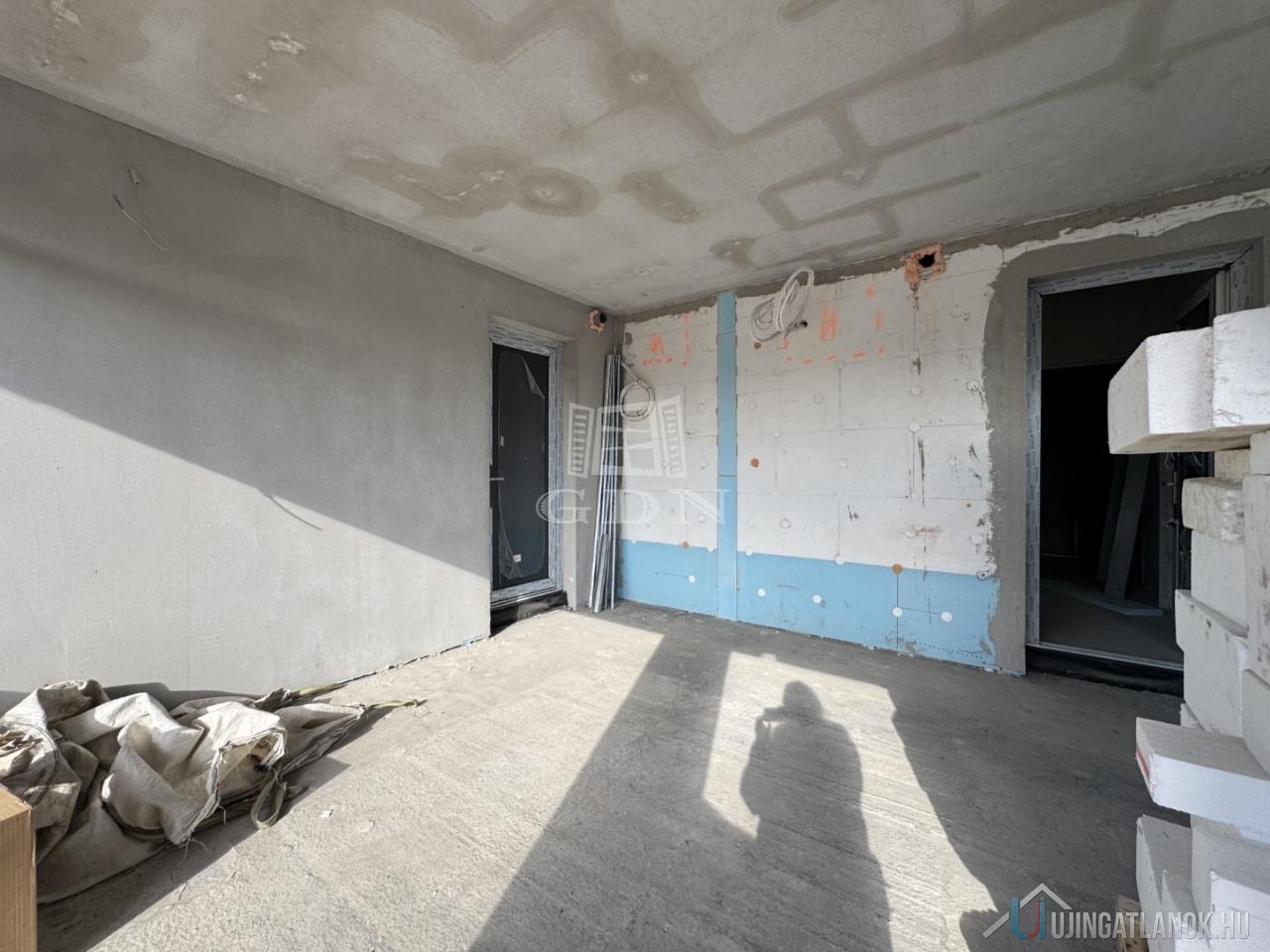 A társasház összesen 12 lakásból és 4 üzlethelyiségből áll – tervezett műszaki átadás: 2026. szeptember.