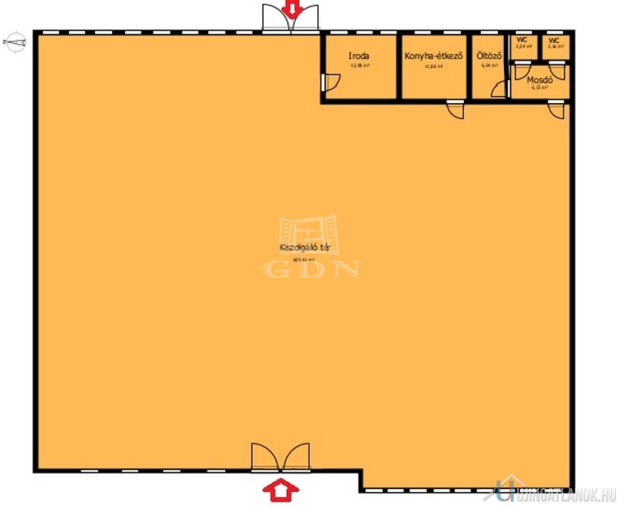 -2177 nm2-es telken helyezkedik el az acélvázas, 15cm-es szigetelt szendvicspanelből épült árucsarnok, melynek alapterülete 662m2(584m2 eladótér, a többi iroda, konyha, fürdő, wc)